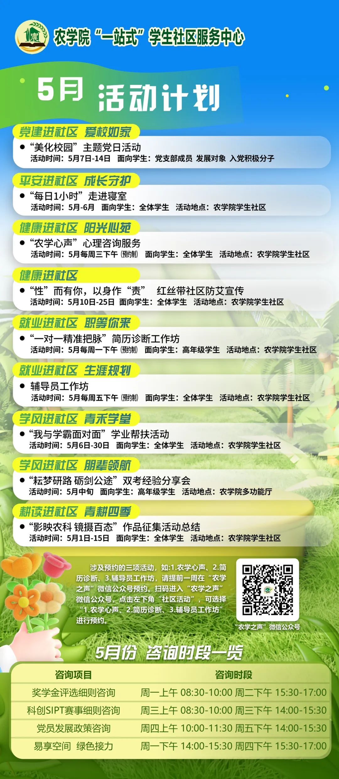 农学院“一站式”学生社区服务中心| 5月份活动预告
