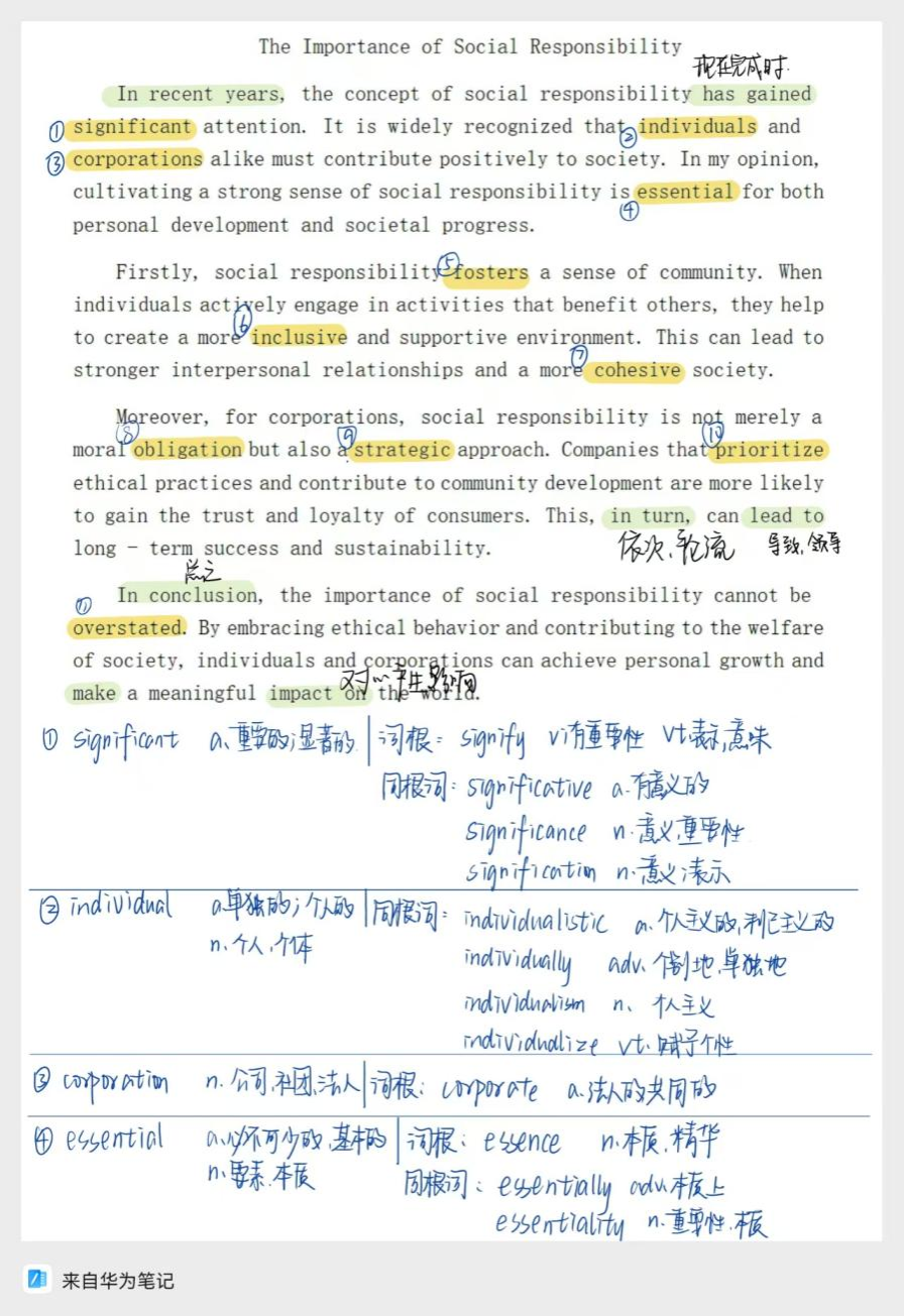 近年来,社会责任这一概念受到广泛关注。人们普遍认识到,个人和企业都应当积极为社会作出贡献。我认为,培养强烈的社会责任感对于个人发展和社会进步都至关重要。