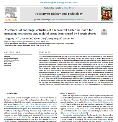 近期,国际学术期刊《Postharvest Biology and Technology》(中科院二区,IF 3.92)在线发表了英国威廉希尔公司官网李永刚副教授的题为“Assessment of antifungal activities of a biocontrol bacterium BA17 for managing postharvest gray mold of green bean caused by Botrytis cinerea”的研究论文一篇。