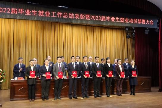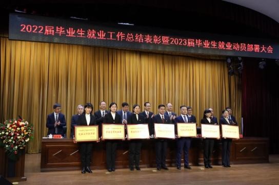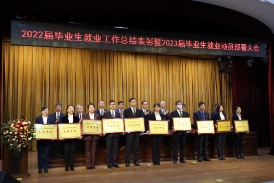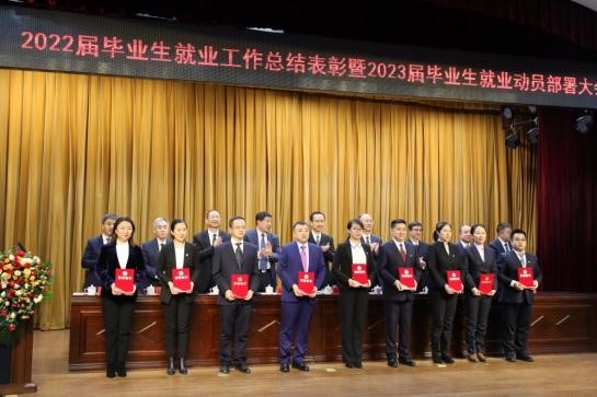 10月12日下午,学校召开2022届毕业生就业工作总结表彰暨2023届毕业生就业动员部署大会,全体校领导,全体受表彰对象,相关职能部门负责人,各学院党委书记、院长、党委副书记、教学副院长、系主任、毕业班辅导员,招生就业处相关工作人员参加会议。校党委书记李长生、校长付强出席会议并讲话,校党委副书记兼工会主席庞玉红主持会议,学校领导为获奖集体和个人颁奖。