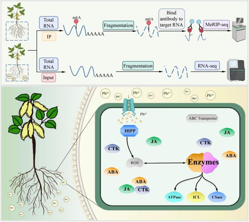 铅(Pb)是土壤中分布最广泛、对环境危害最大的重金属污染物之一。铅的低流动性会导致其在土壤积累并且不可被生物降解。N6-腺苷酸甲基化(N6-methyladenosine, m6A)修饰是mRNA最普遍的内部修饰,在mRNA代谢和基因表达的表观遗传调控中起着重要作用,并且有助于提高植物非生物胁迫的耐受性。近日,东北农业大学陈庆山教授/齐照明研究员团队在Journal of Hazardous Materials(中科院1区TOP,IF=14.224)在线发表了题为“An analysis of differentially expressed and differentially m6A-modified transcripts in soybean roots treated with lead ”的研究论文,为研究大豆根系耐铅机制提供了新的m6A修饰候选基因。