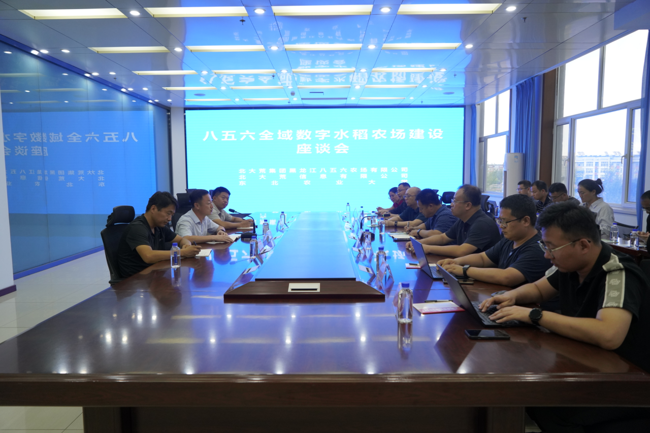 八五六农场有着“寒地水稻第一乡”的美誉。在考察期间,调研组一行先后来到辖区农业现代化示范区、农业技术推广中心、现代农机管理服务中心、垦丰种业八五六农场分公司等处,考察“全域数字水稻”建设,调研了示范园区气象、土壤和植保等智能传感器等现有基础数据,作物栽培试验区水稻各品种长势的数据及现代农机装备应用等情况。座谈会议中,东北农大、北大荒信息公司与农场就智慧农业、技术迭代、人才培养等方面工作交换了意见。付甲东详细介绍了八五六在“全域数字水稻农场”建设上取得的成效,并希望通过本次东北农业大学和北大荒信息有限公司相关专家学者的考察和交流实现数字端、科技端与生产端“三位一体”的全面融合,推动八五六“全域数字水稻农场”建设步入2.0时代。团队建议八五六在打造“全域数字水稻农场”建设中要力求全域、全程和全要素;要强化人物品牌意识,结合徐一戎水稻试验基地建设,强化人物品牌的推广效果;要强化品种品牌优势,依托农垦特有作物品牌和示范园区各类试验示范,加强品牌推广力度。
