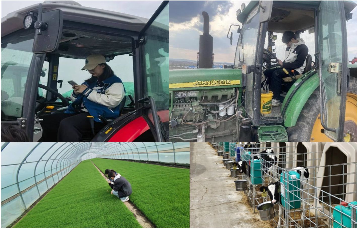 连队队长带领我们了解联队的农机装备情况,向我们示范各种型号拖拉机,播种机,喷农药机等各种器械的操作方式,并让我们亲身体验,实际操作一番,并带我们去连队大棚观察水稻生长情况以及牛场养殖情况,这让我们深刻认识到实践下基层的重要性,只要沉下心,俯下身,脚踏实地,定能收获满满。