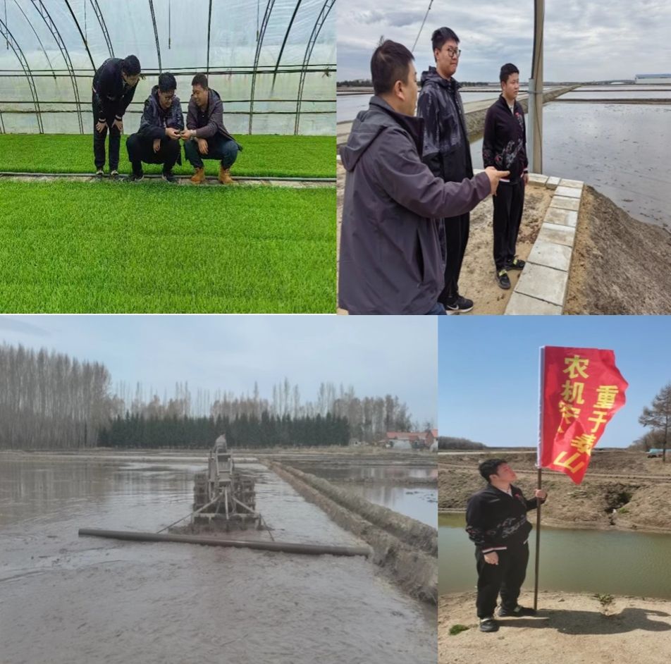 姚富强主任为我们介绍了庆丰农场的基本情况与目前的耕种进度,带我们参观了智慧农业控制中心、自动化育秧工厂,学习了育秧工程规模化,秧田管理数字化,本田作业智能化的流程,观看各种农机具)的产品特点及使用方法。期间与农场技术人员调查了大棚区苗情,从水分,温度,秧苗长势,叶龄,棚内标准化设施等几方面进行逐一检查,并去参观了农户们按照农业标准化进行池埂维修工作的现场和稻田画观景台的建设。