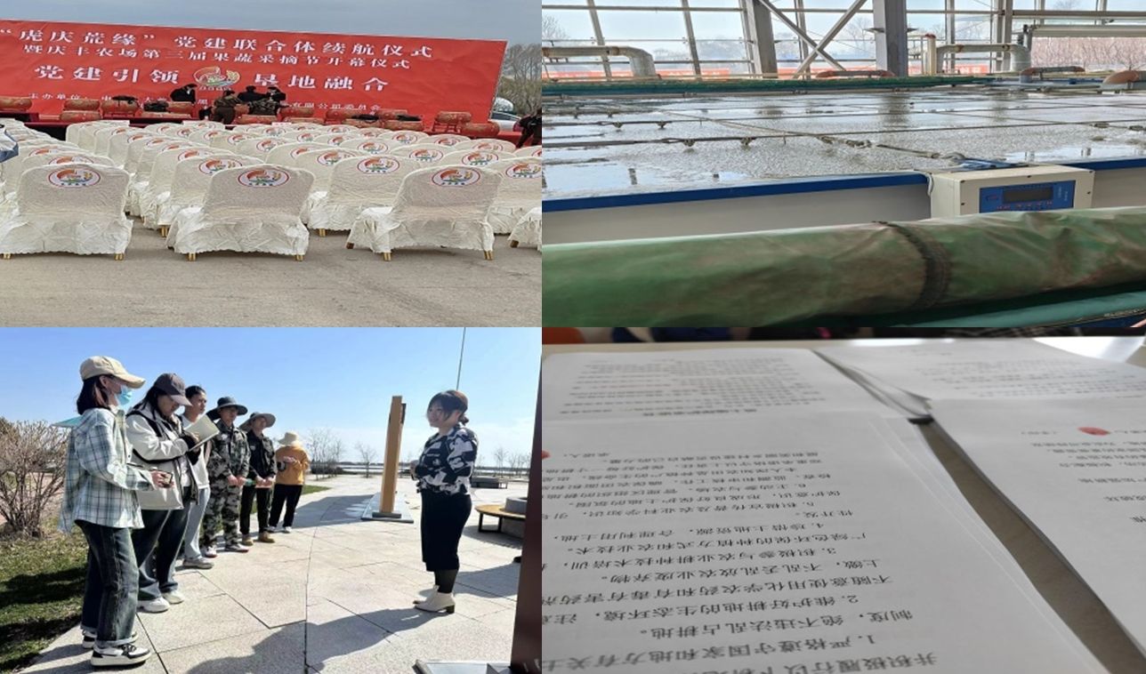 管区书记带着我们到管理区的大型机械收割机储存地实地参观,参观了水稻大棚,学习水稻育秧过程,一起录制了视频,还学习了一些机械的运作原理(水稻收割机,玉米收割机,播撒肥料)。我们参观了土壤实验室,简要了解土壤中化肥元素的测定方法。期间,我们在管理区帮助工作人员办公,了解到农场和农户的深厚关系,学习了北大荒主要种植作物和时令,播种细节等。最后,书记还带我们游览乐当地的党政主题公园,听主讲人讲解十万专业官兵开垦北大荒的故事,学习虎口革命根据地的红色历史。