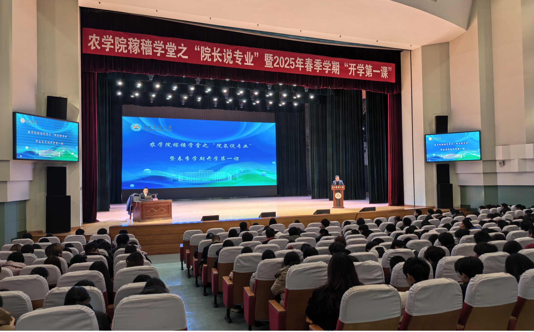 3月17日,农学院在音乐厅剧场举办农学院稼穑学堂之“院长说专业”暨2025年春季学期开学第一课活动。学院院长辛大伟作专题报告,学院党委副书记马涛主持活动,学院全体辅导员、学生代表共计500余人参加活动。