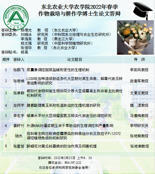 农学院2022年春季作物栽培与耕作学博士论文答辩