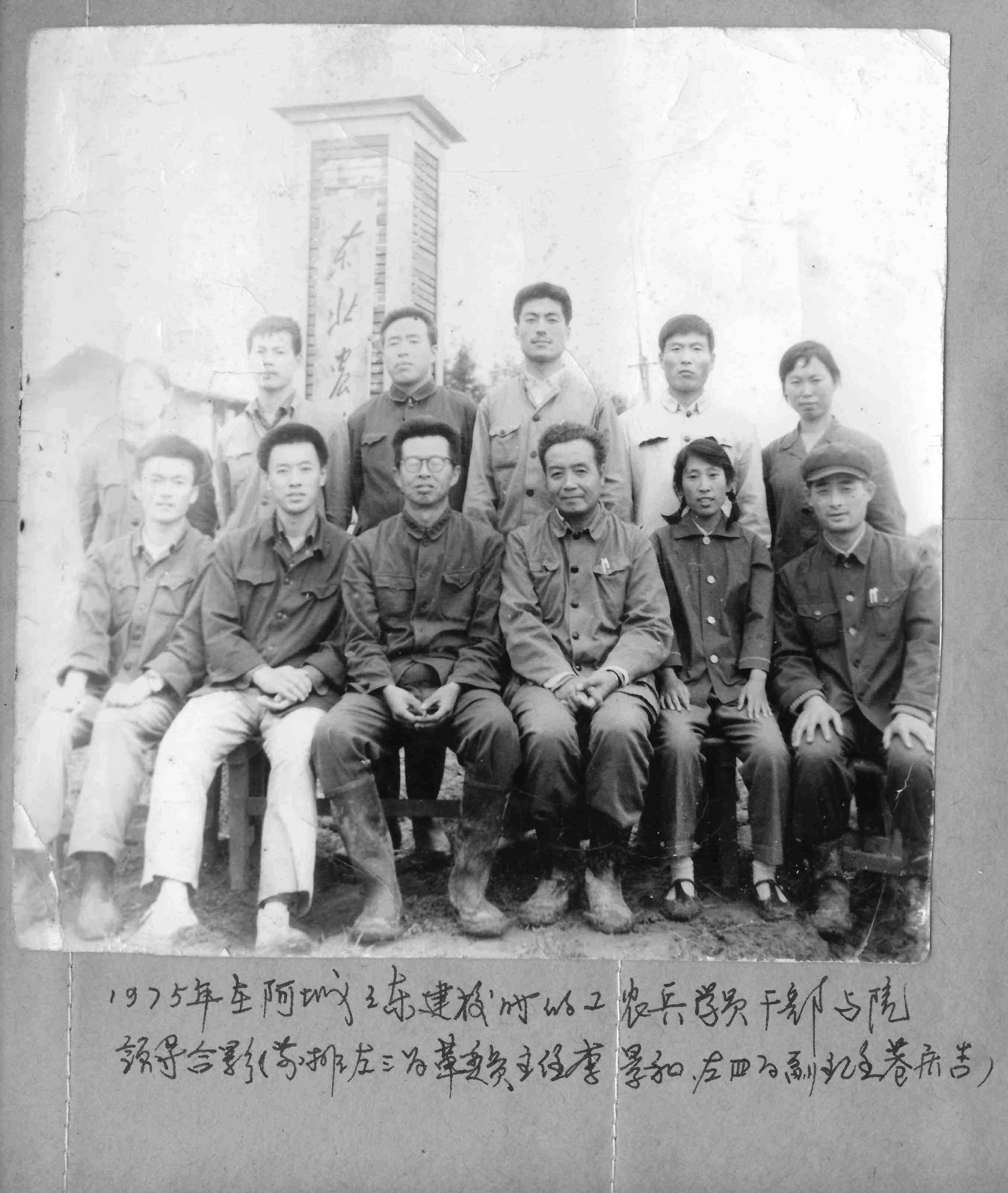1975年在阿城之东建校时的工农兵学员干部与院领导合影